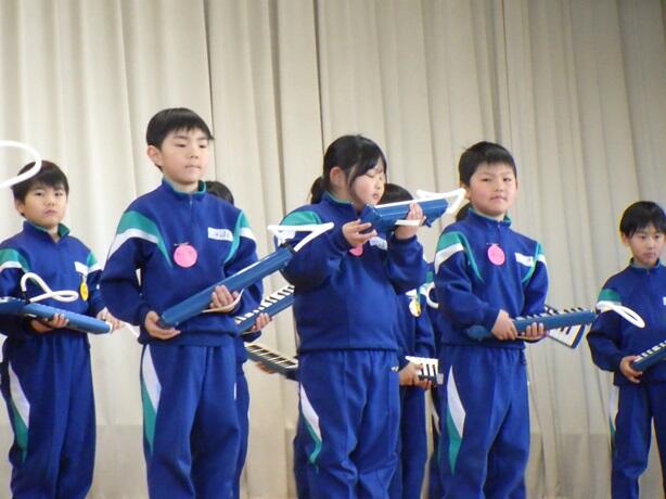 1年生の鍵盤ハーモニカの演奏を聞かせて頂きました。みんなとっても上手です。