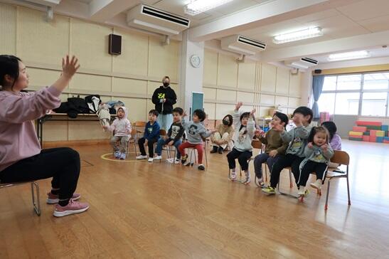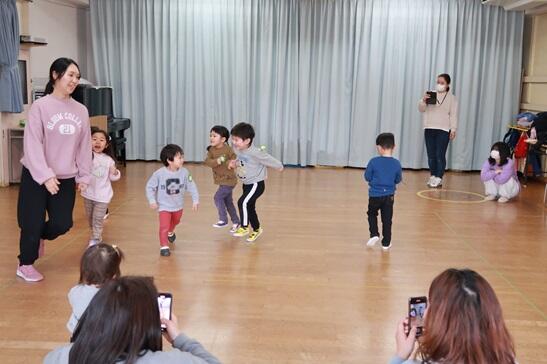 年少さんは、今年度できるようになったことを発表したり、お家の人とダンスをしたりして楽しく過しました。