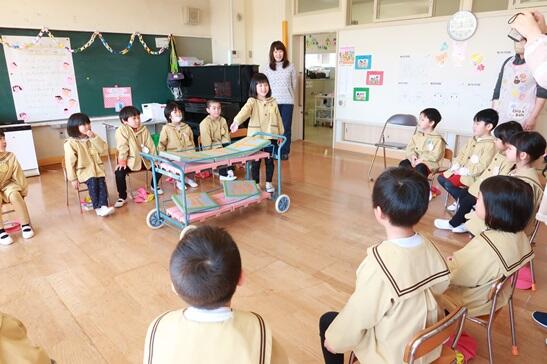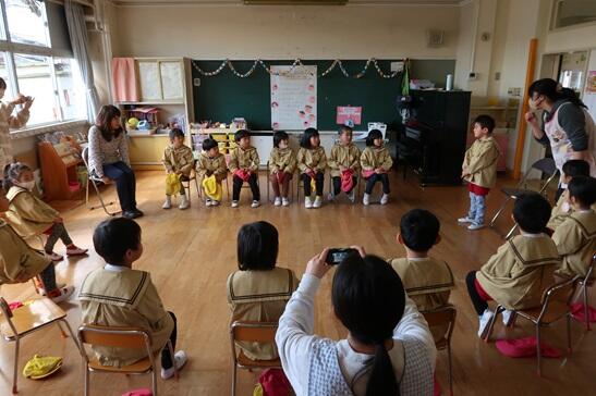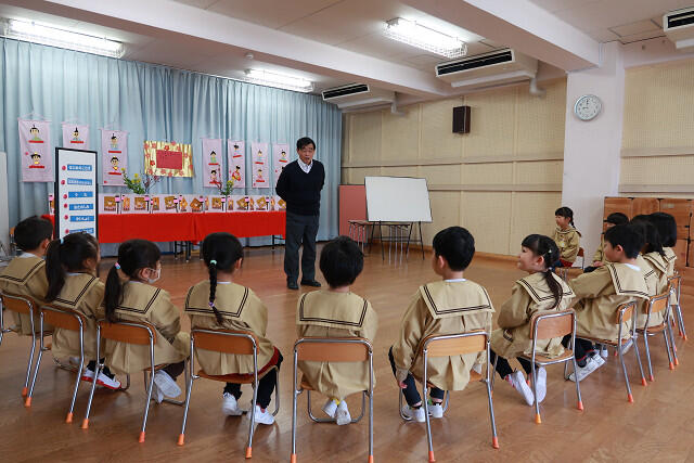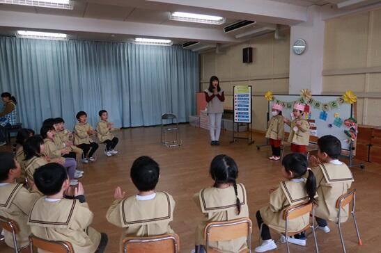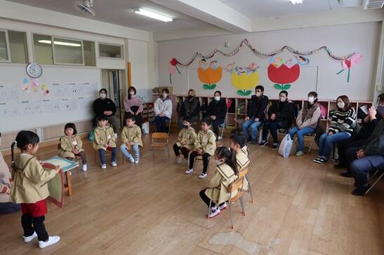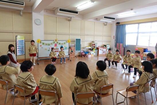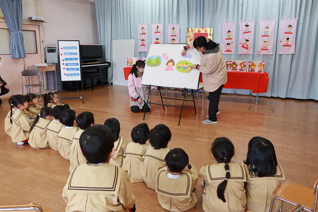 最初に園長先生からひな祭りのお話を聞き、ひな祭りの歌をみんなで歌いました。