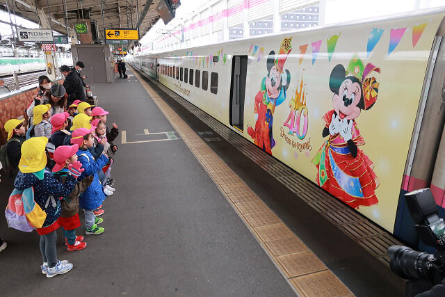 ディズニーラッピング新幹線の前で記念撮影もしました。