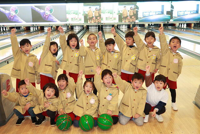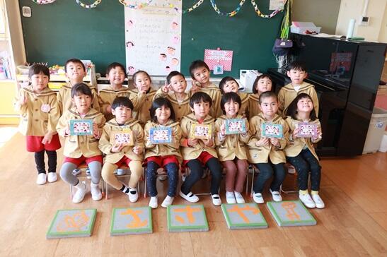 みんなでいい顔で記念撮影です。ブロックには「ささやようちえん」と書いてありますね。