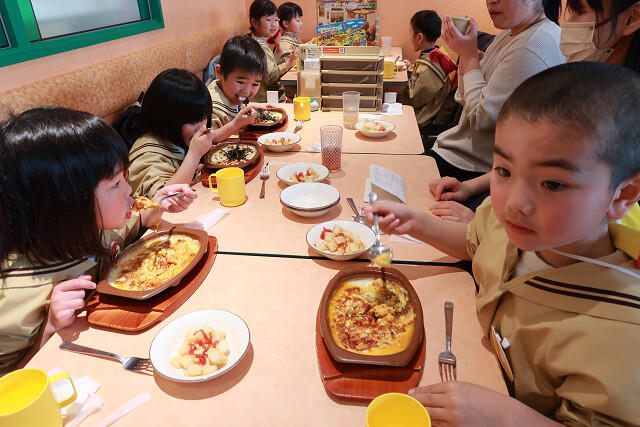 最後は、子どもたちが楽しみにしていたサイゼリアでのランチです。注文はメニューを見ながら注文です。