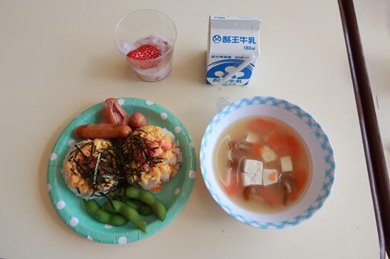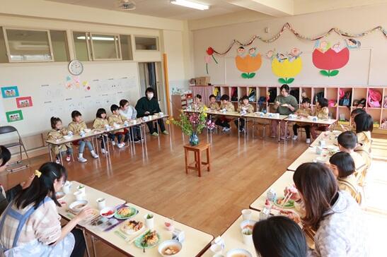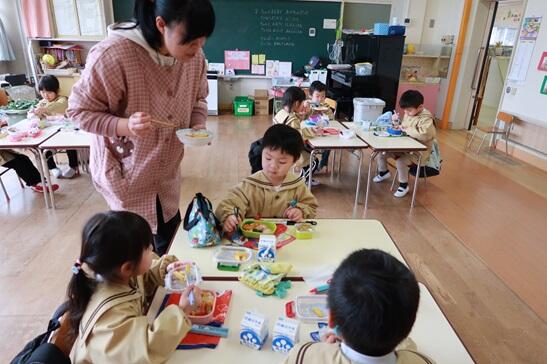 さあ、次は年少つくし組のみんなが協力して作った「ちらし寿司」での会食です。
