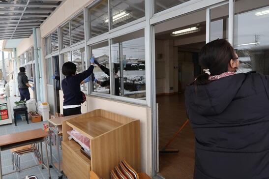 最後に、修了式にむけて保護者の方々に、床のワックスがけやガラス磨き、下駄箱の清掃などをしていただきました。