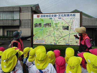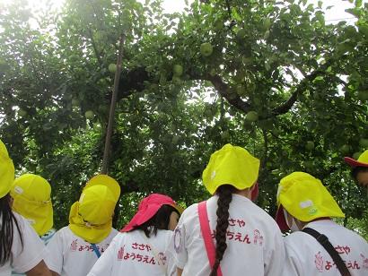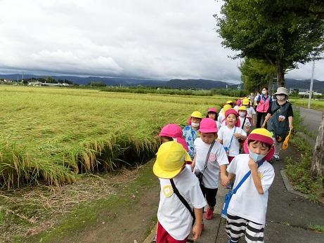 今回は、信陵学習センターめざして、黄金に輝く稲、たわわに実ったリンゴなど、笹谷地区の豊かな自然を感じながら安全に気をつけて、楽しく園外保育です。