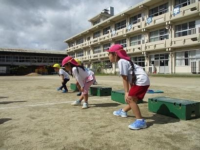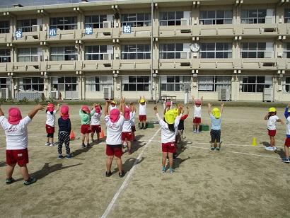 小学校の校庭をお借りして、たくさん体を動かしています。