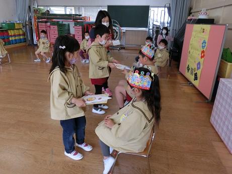 2021年5月18日 11時22分5月7日(金)に4月生まれの年長児3名の誕生会を開きました。