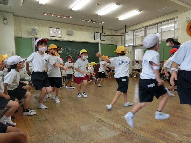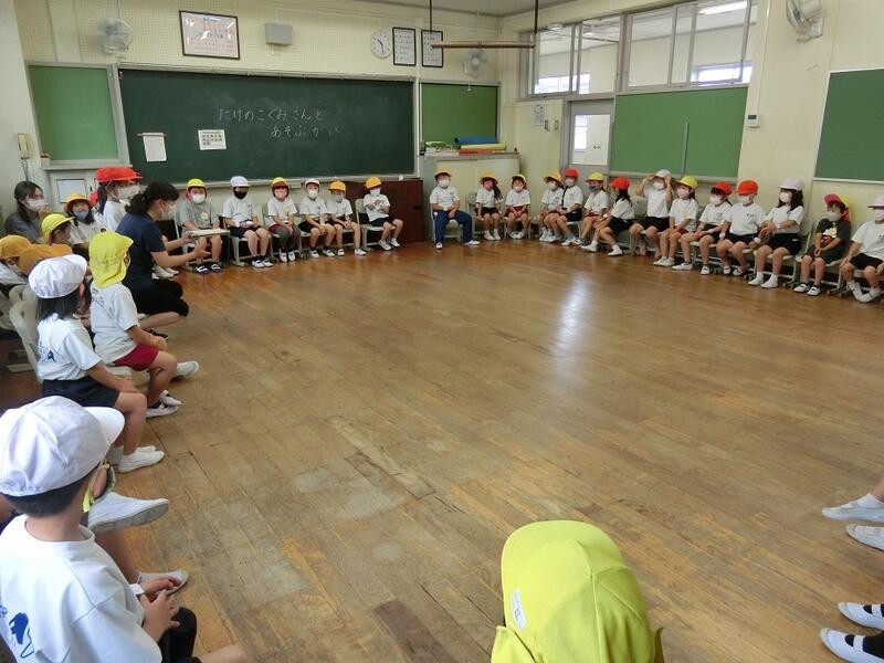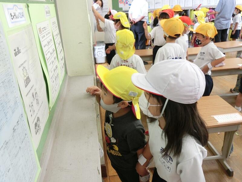 2021年7月13日 10時33分笹谷小学校の1年1組のお兄さん、お姉さんに会いに行きました。