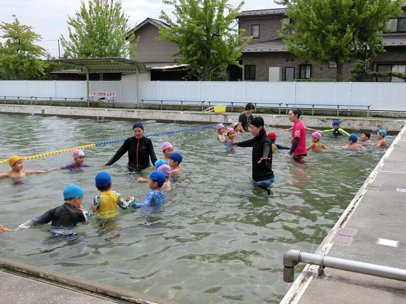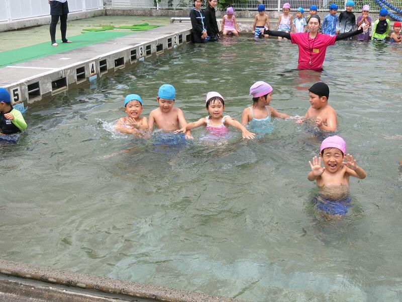 一緒に小学校のプールに入りました。久しぶりでドキドキでしたが、