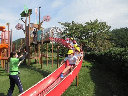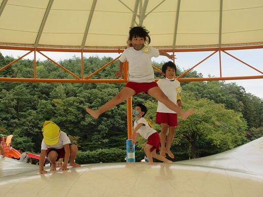 子どもたちはたくさん歩いたにもかかわらず、疲れを忘れてぴょんぴょんドームや遊具で元気いっぱい遊んでいました。