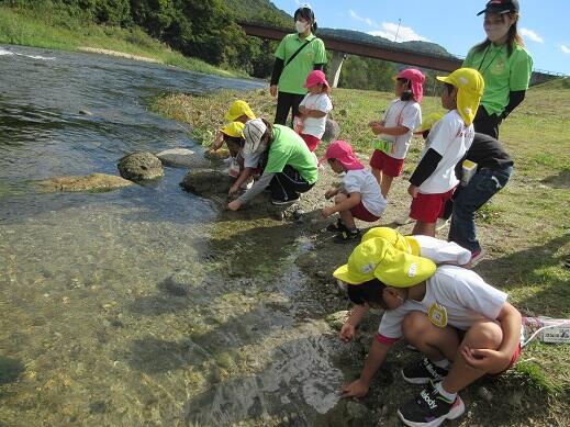 みんなで階段を降りて、川も見に行きました。