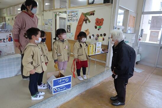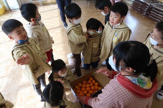 今回は、元気を届けてくれた園児たちにとミカンを持って来てくれました。ありがとうございました。