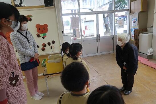 森谷さんから、年少児に「来年もいるんだよね。暖かくなったらまた畑で仕事しているからね」とお誘いの言葉がありました。