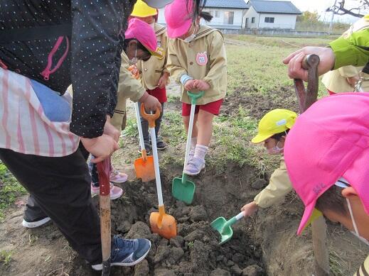 最初は大きな穴を掘ります。スコップを交代で使ってみんなで掘りました。