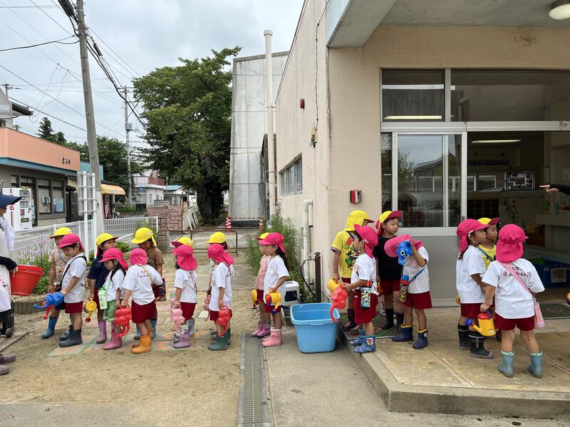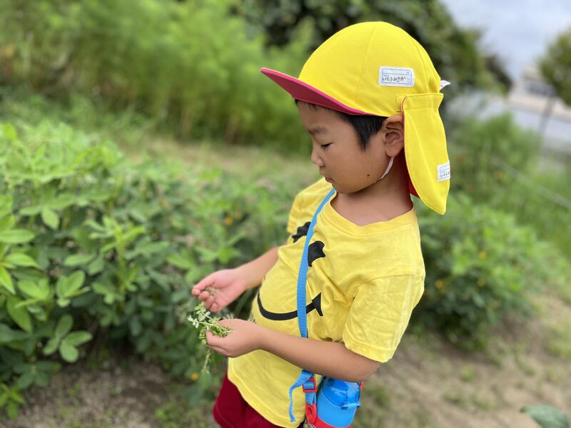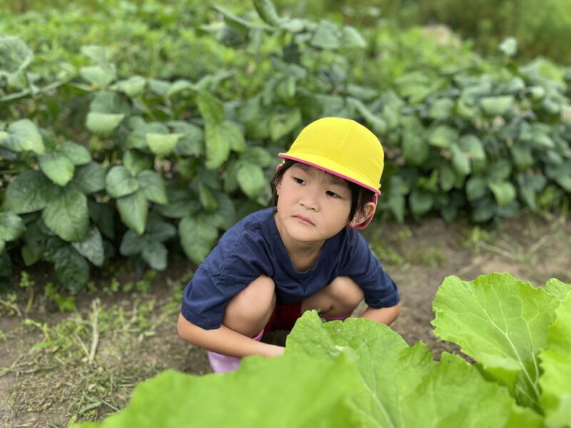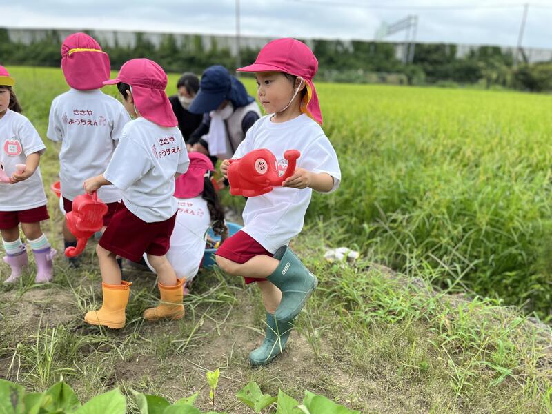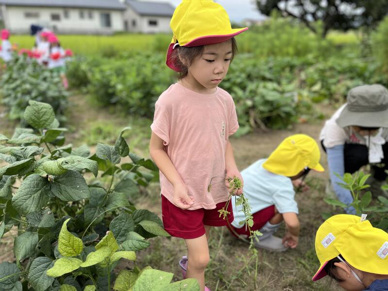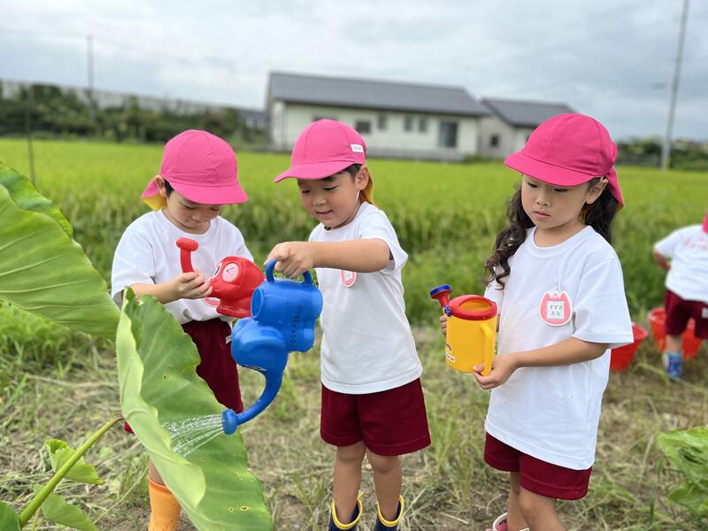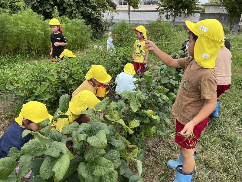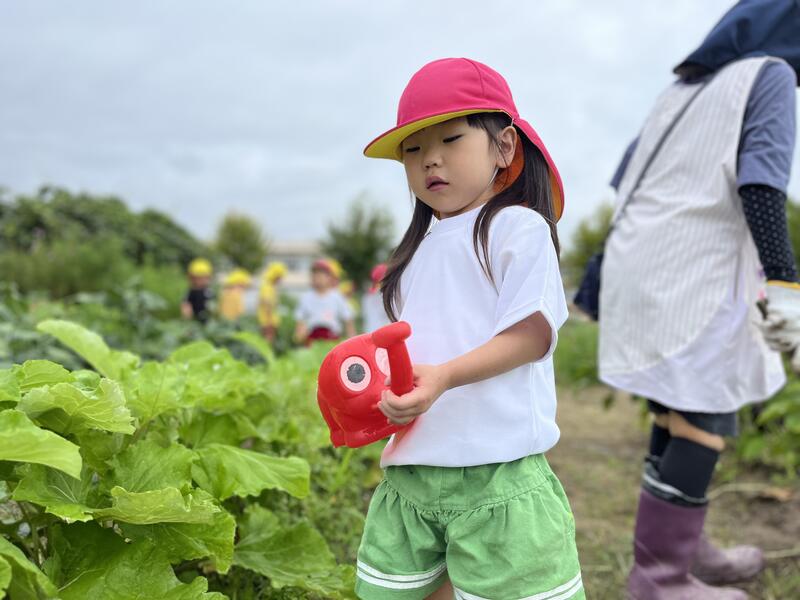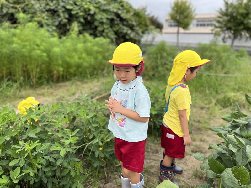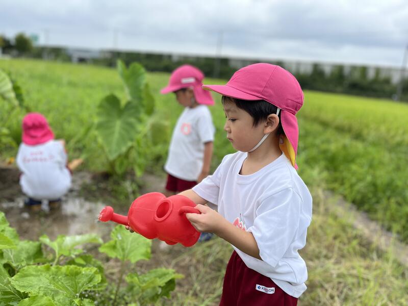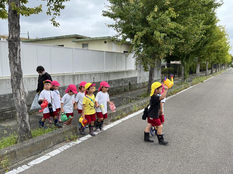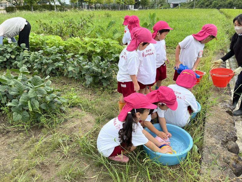 みんなで畑に行き、水をやったり、草をとったりしました。