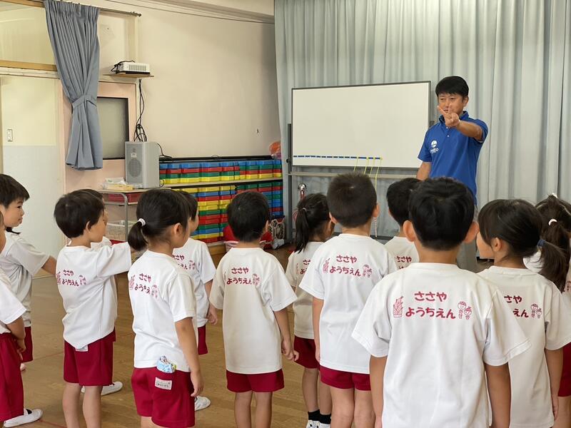 今日から5日間、野田中学校の2年生が職場体験に来てくれます。みんなの前で紹介しました。