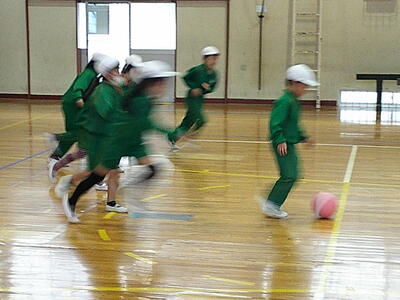 「サッカー型」のゲームをしています。得意な子もいますね。