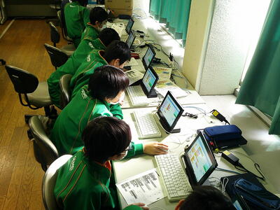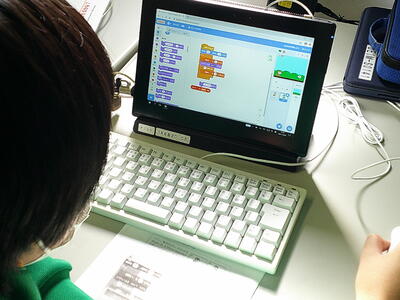 古山先生を講師に、スクラッチをつかってプログラムを作成していました。