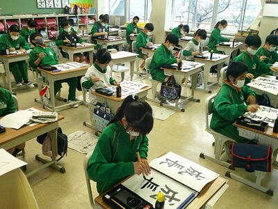 だいたい同じ時間に校舎内を歩いているので、5年生は書写の授業の写真が多いような気がします。