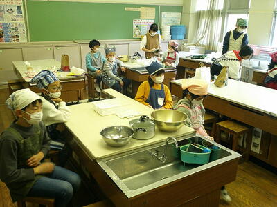 それぞれにクラブ活動を楽しんでいました。科学クラブはポップコーンをつくるそうです。