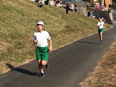 阿武隈川隈畔道路で、持久走大会を行いました。