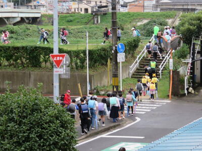 午前中降っていた雨も午後にはほぼ止んだ中、清明安全の日が実施されました。担当の先生から「信号のない横断歩道での交通事故が昨年より増えている」と警察署の方が話があったと話されました。横断歩道で車が止まってくれても、必ず左右を確認してから渡るように話しました。