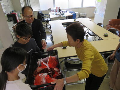 本日、交通安全母の会よりペットボトルキャップと球根の贈呈が行われました。代表して環境委員会の代表児童が受け取りました。ペットボトルキャップは各方部で土日に集められたもので、大きなごみ袋24袋分ありました。チューリップの球根は、花壇や生活科で使う予定です。ご協力いただきました皆様、ありがとうございました。