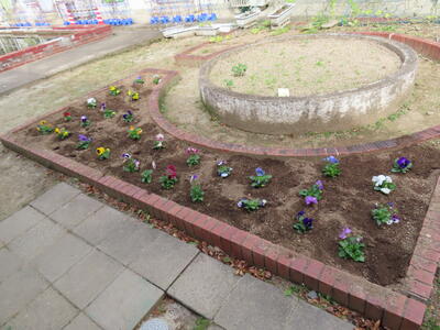 一人一人が、選んだパンジーの苗を植えました.冬を越して、さらに、きれいな花が咲くといいですね。