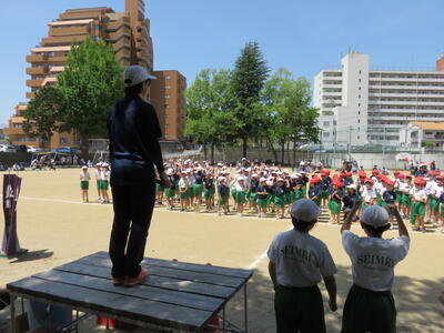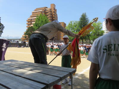 最後の種目は、56年生による鼓笛です。息の合った演奏と行進が見られました。閉会式では、白組の勝利が伝えられると白組の子供たちから歓声があがりました。みんなで「力を合わせてがんばった」清明フェスティバルでした。応援やその他ご協力をいただきありがとうございました。