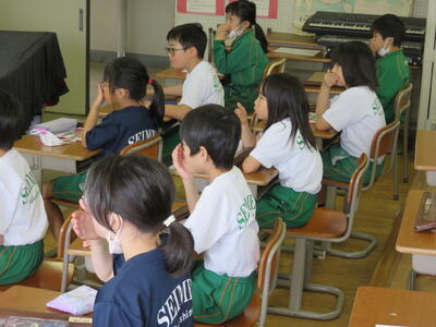 2024年6月7日 09時33分本日、1校時に東京リコーダー協会の方を講師にリコーダーの講習会を行いました。姿勢や息のふき方や持ち方、音の出し方などを習いました。最後に「アイドル」という曲を披露しました。