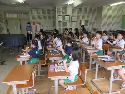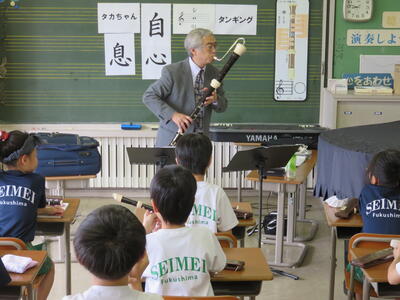 本日、1校時に東京リコーダー協会の方を講師にリコーダーの講習会を行いました。姿勢や息のふき方や持ち方、音の出し方などを習いました。最後に「アイドル」という曲を披露しました。
