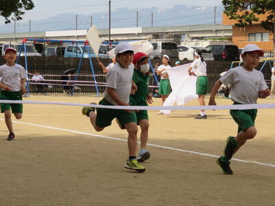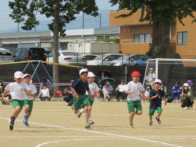 ラジオ体操の後は、個人走です。ゴール目指して、最後まで全力で走りました。