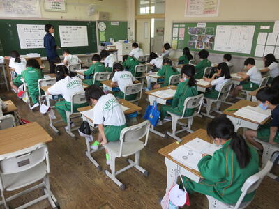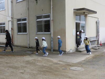 3校時目に第1回避難訓練を行いました。地震想定のもと避難経路の確認をしました。雨が気になる天気でしたので、非常口から校庭に出た後、体育館に入りました。どの学年も話をせず真剣に取り組み、とても立派でした。