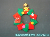 赤と緑の折り紙を組み合わせて、クリスマスリーズを作りました。