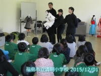 12月1日(火)、「人形浄瑠璃体験ワークショップ『ふれアートinこむこむ』参加者募集PR」のため、札幌市こどもの劇場やまびこ座・こぐま座の方々が本校を訪れ、人形浄瑠璃を見せたり体験したりさせてくださいました。