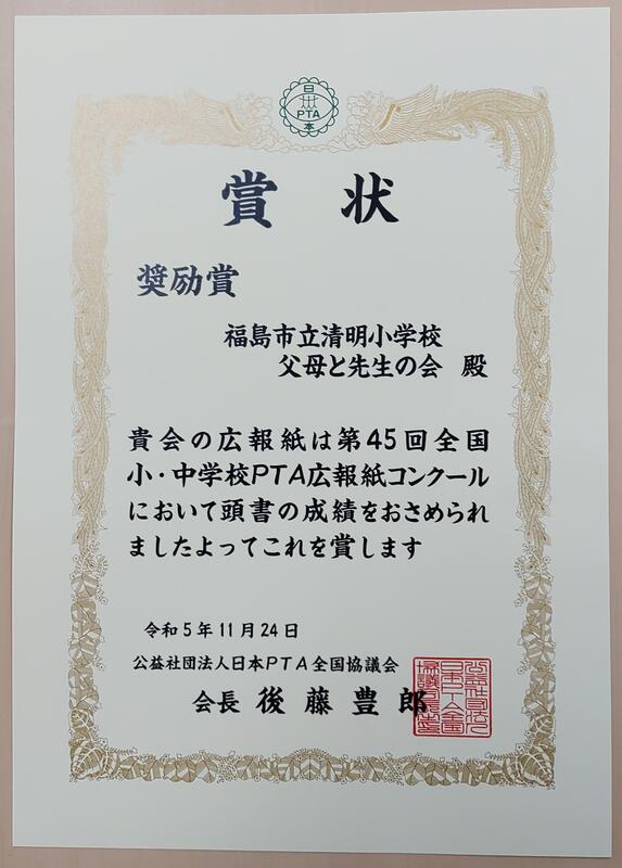 2024年2月20日 06時52分本校の広報紙「せいめい」が、第45回全国小・中学校PTA広報紙コンクールに出品され、