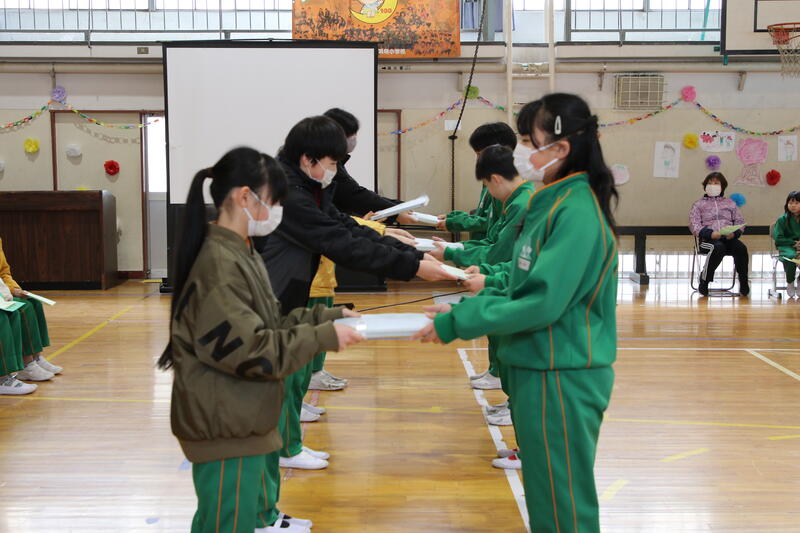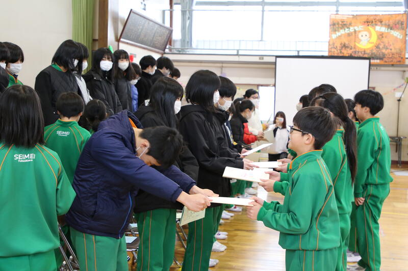 【感謝のことば・児童会活動の引継ぎ・記念品贈呈】