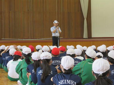 本日の3校時目に、荒川が氾濫した場合の避難訓練を行いました。まず、放送の指示に従って体育館に一次避難した後、福島第一小学校への二次避難に移りました。途中まで避難し戻りましたが、安全に気を付けて真剣な態度で訓練に臨んでいました。最後に、体育館で校長と係から8.5水害やなどの話がありました。