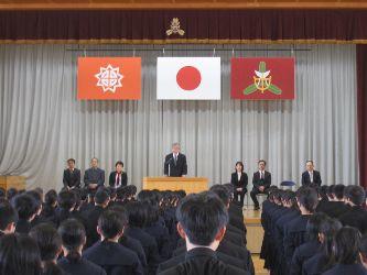 新年度を迎え、本校に7名の先生方が着任しました。着任式では、生徒を代表して生徒会長の山田大晴君より、歓迎のことばがありました。