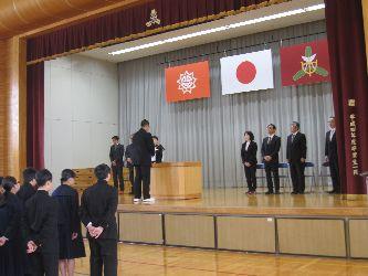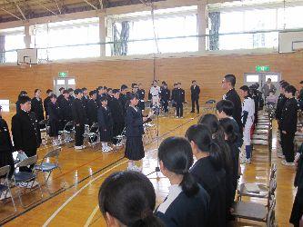 本日、修了式を行いました。この1年間、生徒たちは様々な活動にしっかり取り組み、勉学に励むことができました。1年間の反省をしっかり生かし次へのステップとして取り組んでほしいと願っています。