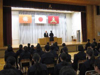 本日放課後,同窓会入会式を行いました。あわせて,卒業記念品授与と贈呈式も行いました。