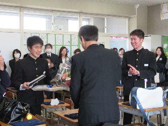 本日昼休み、3年生主催でお別れの会がありました。3年間の感謝の想いを込めたこの会に参加し、生徒たちの成長した姿に私たち教職員はこみ上げるものがありました。花束や記念品ありがとうございました。また、心の込もった合唱ありがとうございました。