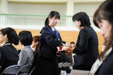卒業生は阿部校長から一人一人卒業証書を授与され、その後事前に準備していた手紙に花束を添え保護者に手渡しました。受け取った保護者の皆様も感無量であったことと思います。