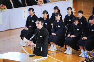 校長式辞、教育委員会告辞、来賓祝辞の後、在校生を代表して加藤亜美さんが「卒業生を送ることば」を感謝を込めて述べました。その後卒業生を代表して佐藤涼磨さんが「卒業生別れのことば」を母校への想い、仲間への想い、先生方への想い、保護者の皆様への想い、そして在校生には西信中を任せたぞという願いを込めて立派に述べました。