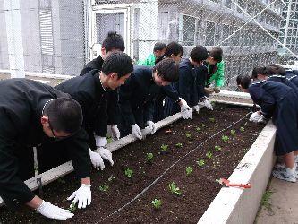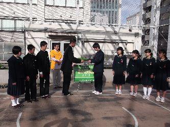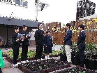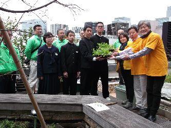 東京・銀座のビルの屋上で養蜂に取り組む「銀座ミツバチプロジェクト」が主催する「銀座・福島菜の花交流事業」の一環として、本校2学年の生徒会役員4名は、自ら育てた菜の花の苗を贈呈するため、銀座に出向きました。2月下旬ごろには花が咲き、銀座周辺のミツバチの蜜源になるとのことです。