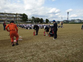 福島南消防署信夫分署の皆様から、初期消火の大切さや自分の身を守ることの大切さ、そして消火器の使用法についてご指導していただきました。また、生徒の訓練について全体的にしっかり取り組んでいたとお褒めのことばをいただきました。今回は教職員を対象に、消火器を使用しての訓練も行いました。