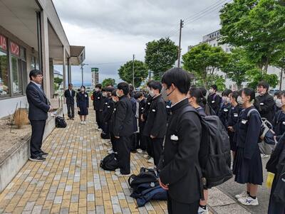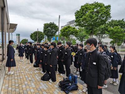 教頭先生に「行ってまいります」と全員そろってあいさつをしました。