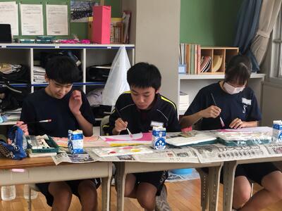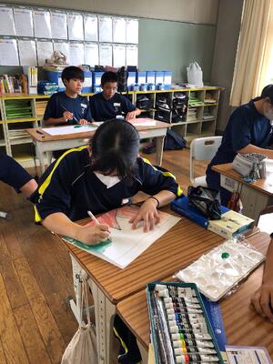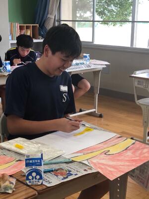 先週金曜日に全校一斉にビックアート制作に取りかかりました。