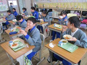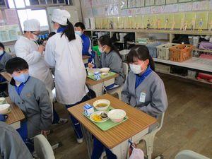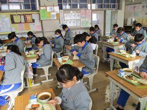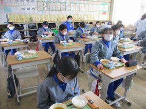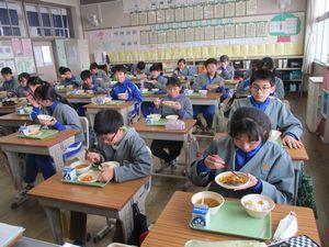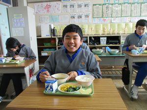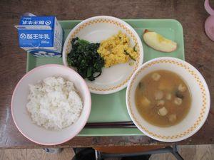 2021年2月12日 15時39分今日は「栄養バランスを考えた献立」でした。メニューは「ごはん・牛乳・ゴマ和え・卵とピーマンの炒め物・なめこの味噌汁・りんご」でした。今日の献立は,6年1組「主食・ごはんチーム」の皆さんが家庭科の時間に考えてくれたものです。成長期に欠かせないカルシウムやカロテンが摂れるように,わかめ・ピーマン・小松菜・ほうれん草を入れて栄養バランスを考えた献立です。ピーマンが嫌いでも食べやすいようにと,卵とピーマンの炒め物にして工夫してくれました。5年生は6校時に体育を行いましたが,「卵とピーマンの炒め物パワー」で持久跳び(5分間)合格がたくさんいました。ご家庭でも苦手なものも食べられるように工夫した調理をしてみてはどうでしょうか?
