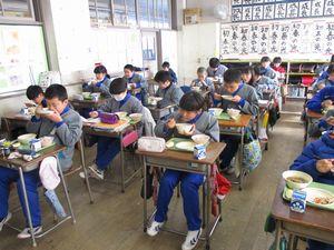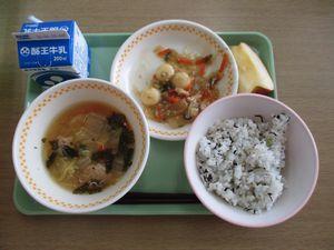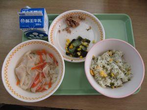 今日は「嫌いなものをなくそう献立」です。家庭科の時間に6年3組の6班の皆さんが考えたものです。給食ではめったに出ないチャーハンを提案しました。給食室で全員分を炒めることができないので,今回はチャーハンの具を混ぜご飯にしてくださいました。瀬上小のみんなが「残さず食べた!」「おいしかった!」と満足してほしいとの願いが込められた献立でした。ご家庭でも好き嫌いせずに食べられるように,励ましをお願いします。